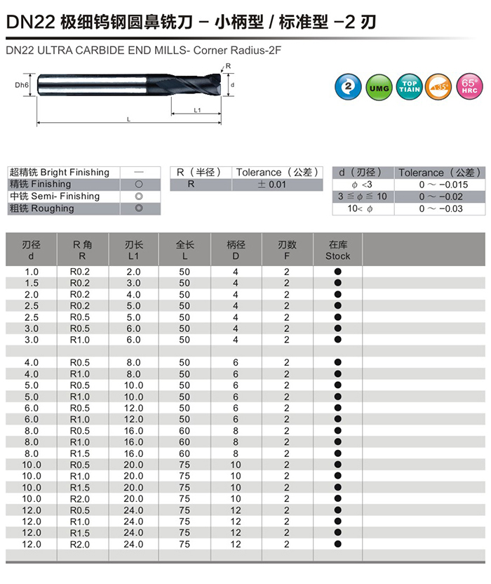 DN22極細(xì)鎢鋼圓鼻銑刀-小柄型/標(biāo)準(zhǔn)-2刃